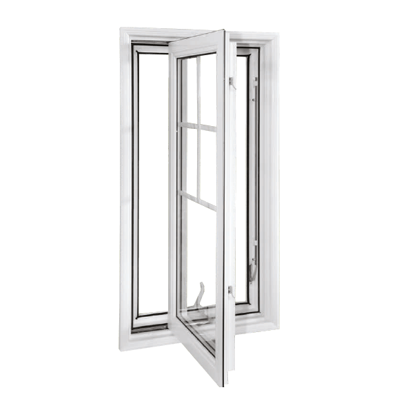 Casement windows open and close easily to a 90 degree angle while providing a clear and unobstructed view of the outdoors. The vinyl casement window opens in the same way as a door, and is hinged on one side of the window frame.